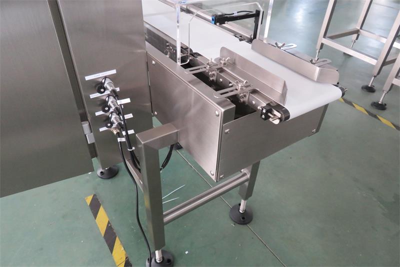 下面這幾張圖是我司工廠現(xiàn)貨圖分別是 多列撥桿式SG-D300檢重秤 和 氣吹式SG-150檢重機(jī)