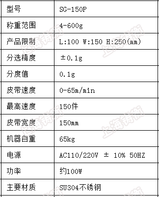 SG-150高速檢重秤規(guī)格: