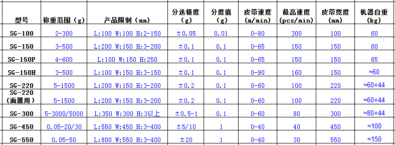 動(dòng)態(tài)檢重機(jī)規(guī)格: