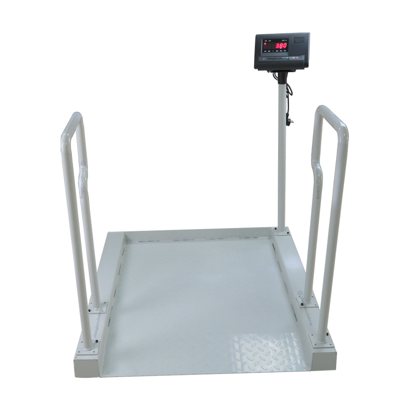 輪椅秤設(shè)計人性,比如自帶單或雙引坡,方便物貨的上下搬運;自帶雙扶手,方便人們的來回行走等。